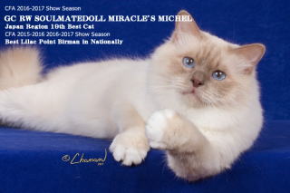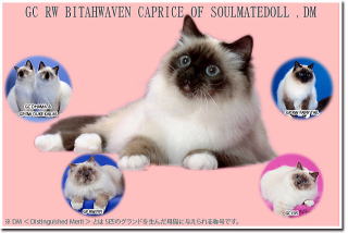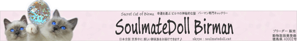 | 不思議な御縁があって はるばる海を越えて我家にやってきた『神秘的な伝説を持つ 幸福を運ぶ猫 バーマン』 バーマン猫が Sacret Cat of Burma 【神秘的なビルマの猫】と呼ばれるのは 神秘的な伝説を持っているから♪ 道端で拾った猫しか飼ったコトがなかった私が 2000年版 日本と世界の猫カタログ でバーマンを初めて知った時から運命を感じてしまったのです それから 探すコト約2年間・・・ バーマン専門キャッテリー そうるめいと どーるは 1匹のバーマンとの出会いから始まりました 最初のバーマン スターと初めて会ったのは 2002年6月 ニューヨーク州の彼のキャッテリーでした 6月21-22日にNY州で ドールコンベンションがあったのです 良いお人形が出来ず 1度は参加をキャンセルしたのですが 某旅行情報雑誌で 見つけてしまったのです 『6月20・21日出発限定 NY 4万円!』 これはもう 行くしかないでしょう!って感じで 即 旅行会社に電話しました いくら安くても 安全な航空会社じゃないと・・・『AIR CANADA指定』で キャンセル待ちをしたのが 6月15日 出発迄1週間を切っていました 私は『スター アライアンス グループ』の『ユナイテッド エア ラインの特別会員』だったので 優遇される可能性があるというコトでしたが 往路 復路とも キャンセル待ちは難しいというコトで復路は空いていた25日に予約を入れました 旅行会社からは 『とても難しいです』と言われていたのですが 『もしかして 取れたら・・・向こうで2日間 時間が出来てしまう バーマンのキャッテリーでも訪ねるか』と 軽い気持ちで NY州のキャッテリーに連絡をとったのです 『バーマンを見てみたい』というのが目的で 買って来るつもりは無かったのです 実は 『来てもいいですよ』と返事をくれたのがスターのキャッテリーだったのです 奇跡的に席が取れ NYに行くことになったのです!!! 旅行会社の人も『ラッキーでしたね』と ビックリしていたみたいでした スターのブリーダー Ms.Tippiに NYについてから連絡を取りました 滞在している所に帰って来たかったのですが 1日で往復するには余りに遠い・・・ 『あなたの家の近くにB&Bは ありませんか?』と聞くと 『家に泊まっていいですよ』という返事! 見も知らない日本人を家に泊めてくれるって??? 私 猫 買わないといけなくなるんじゃないの??? と 戸惑う私に 『あなたとは何度もやり取りしているし 家族は居ないのでいいですよ』という御言葉に甘えるコトにしました バス停迄 車で迎えに来てもらって お家に着きました 彼女の家に入ると・・・バーマンが もう 部屋中に居るのです! 『おお 夢にまで見たバーマンがテンコ盛り状態!』 でも 私の好きなカラーはブルーポイント と リンクス・・・ 彼女は『譲れる猫が1匹居ます シールポイントの10ヶ月の雄で 今 グランドポイント126ポイントで 必ずグランドになりますよ』と 早速 私に その猫を見せてくれたのです この子がスターだったのです! 彼は もう1匹の10ヶ月のシールポイントの雄”CC”と一緒に ハンモックの上で 気持ち良さそうに寝転がっていました 『なんか 神秘的すぎて怖い・・・』というのが 最初に見た印象でした 泊めて頂くのに 今 ハッキリ断らないと 1番中勧められたら困る と思った私は 『シールポイントに興味ありません』と キッパリ 断ったのです 今思えば 何て失礼な私・・・ でも そんな私に Ms.Tippiは変わることなく やさしく接してくれ 1晩中 バーマンについて いろんなコトを教えてくださったのです PM11時を過ぎた頃 私の横を1匹のシールポイントの雌が横切ったのです・・・『綺麗!』と初めて思ったのです で Ms.Tippiに『この子は チャンピオンですか?』と聞くと 『いいえ この子はグランドよ』という答え! 『シールポイントも悪くない』 と 初めて思ったのです! この日はベッドに入ったのはAM12時過ぎでした 1晩 泊めて頂いて 翌日午後 NYに着いた後 ニューヨーク市の同時多発テロで崩壊したツインタワーの跡地 グランドゼロを訪れました なぜか 行かなければいけない!と思ったのです そこで 私の心の中には1人の女性のコトばかり浮かんで来るのです 最上階の早朝会議に出席していて亡くなった27歳の徳島出身の女性のコトばかりが・・・です その時 両親が徳島県出身で早朝会議でツインタワーの最上階でテロに遭遇し 亡くなった27才の女性のコトばかり ずっと 心に浮かんでくるのです 彼女に対して 特別な思い入れも無く ご自身が徳島県出身で亡くなった方もいらっしゃるのに なぜ この女性が心に浮かんでるのか わからなかったのですが・・・ 26日に帰国して スグの28日 義理の伯父が亡くなりました 伯父のお葬式に 伯父の姪御さんがいらしていて(私は伯母の姪) お話を聞いて 全てが繋がりました 伯父の姪御さんの旦那様の姉妹のお孫さんが同時多発テロで亡くなったコトを知ったのです このお孫さんが グランドゼロを訪れた時 ずっと 心の中に浮かんできた 女性 その人だったのです 帰国子女で バーバード大学を卒業後 野